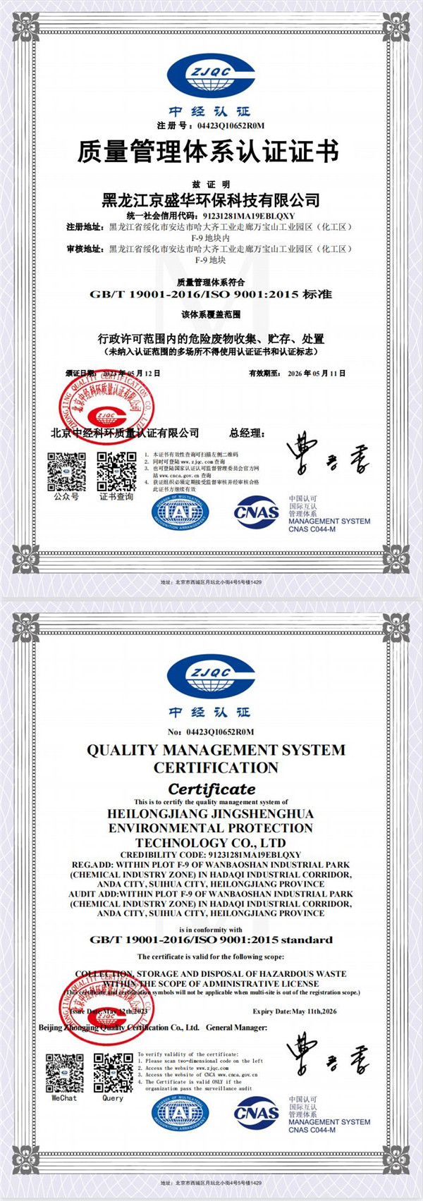 黑龍江京盛華環(huán)??萍加邢薰竟腆w廢物污染環(huán)境防治信息公示